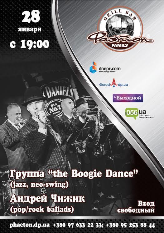 28 января, в субботу, гриль-бар приглашает в Гости и гарантирует непередаваемые впечатления и эмоции. Фаэтон с радостью представляет Вам Гостей виртуозов американского джаза и нео-свинга, харизматичных и неутолимых – the Boogie Dance! Неувядаемые выступления классических джазовых стандартов – Minnie The Moocher, Mack The Knife, Up A Lazy River, произведения ярчайших представителей сцены эпохи Neo-Swing The Brian Setzer Orchestra, Big Bad Voodoo Daddy, Squirrel Nut Zippers. А так же разогреет и поддержит атмосферу комфорта приятный вокальный подарок от нашего Гостя Андрея Чижика! Атмосфера уюта и комфорта уже ждет Вас в самом необычном гриль-баре в городе!