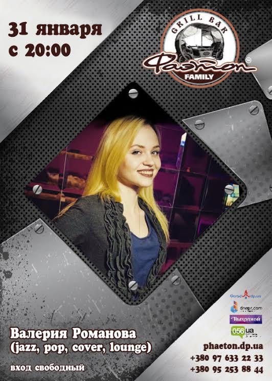 Во вторник, 31 января, приглашаем Вас расслабиться и насладиться ярким выступлением Гостя сцены Фаэтона. Традиционно, Вас ждет множество вкусных блюд, фирменное не фильтрованное пиво, отличное настроение и музыкальные сюрпризы от элегантной Валерии Романовой. Приходите и наслаждайтесь!