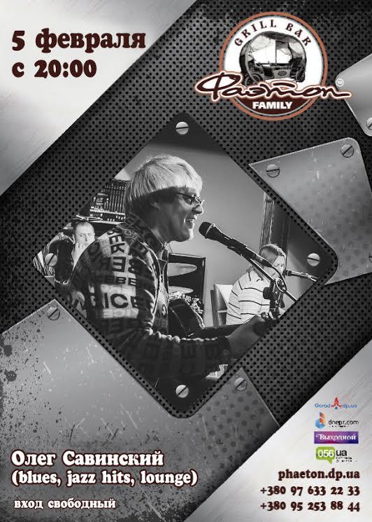 В воскресенье, 5 февраля, приглашаем Вас расслабиться и насладиться ярким выступлением Гостя сцены Фаэтона. Традиционно, Вас ждет множество вкусных блюд, фирменное не фильтрованное пиво, отличное настроение и музыкальные сюрпризы от элегантного Олега Савинского. Приходите и наслаждайтесь!