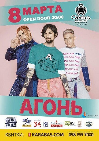 Концерт АГОНЬ в Днепре состоится 08 марта 2017 г, 20:00.