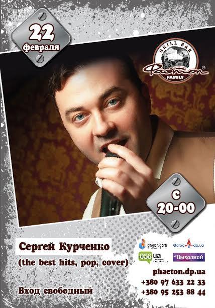 В теплый вечер среды, 22 февраля, приглашаем ощутить наслаждение от вокала нашего нового Гостя сцены Фаэтона Сергея Курченко. Приятные и яркие композиции, популярные и известнейшие хиты, проникающий вокал, элегантность авторских подач – все это ждет Вас согревающий зимний вечер гостеприимного Фаэтона. Ждем Вас в Гости!