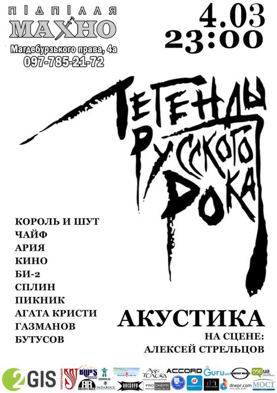 Музика Легенды русского рока 2 By Татьяна Иванова - 02.03.2017 00:00 0 27 Поділитися FacebookViberTelegramTwitterWhatsAppPinterestPrintEmail Акустический концерт из песен классического русского рока 80-90-х годов! Вход: 40грн! Заказ столов 0977852172!