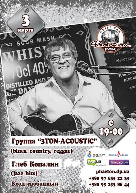 Вечер пятницы, 3 марта, заполнит своим звучанием группа 3ton-acoustic & Глеб Копалин