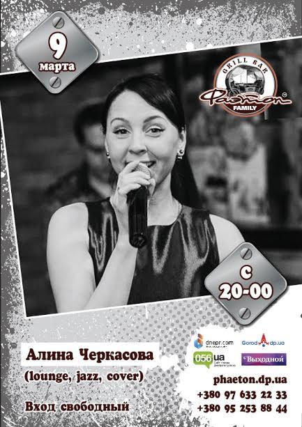 В четверг, 9 марта, приглашаем Вас провести вечер с яркими эмоциями, отличным настроением и вкусными блюдами. На сцене гриль-бара – Алина Черкасова.