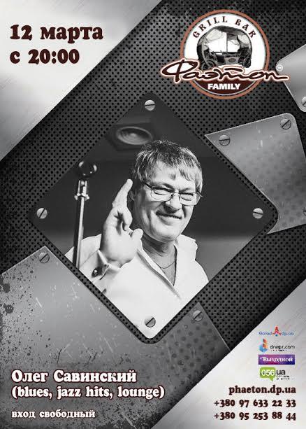 12 марта, приглашаем Вас провести вечер с яркими эмоциями, отличным настроением и вкусными блюдами. На сцене гриль-бара представитель прекрасной мужской стороны, обаятельный и харизматичный Гость с приятным вокалом Олег Савинский. Приходите, ждем в Гости!