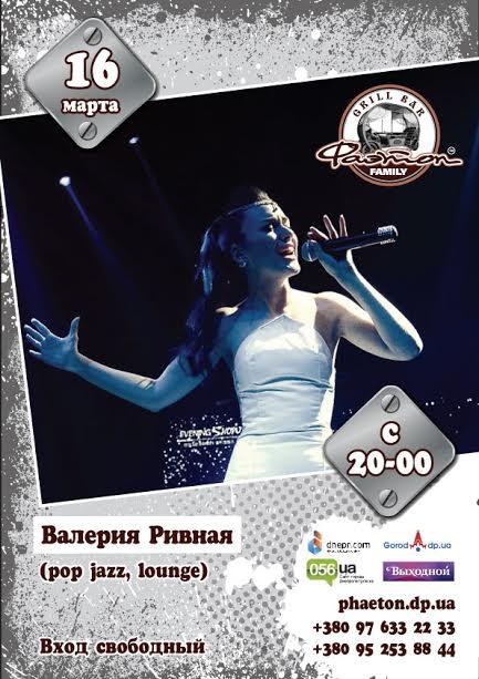 В теплый вечер 16 марта приглашаем ощутить наслаждение от вокала нашего нового Гостя сцены Фаэтона Валерии Ривной. Ждем Вас в Гости!