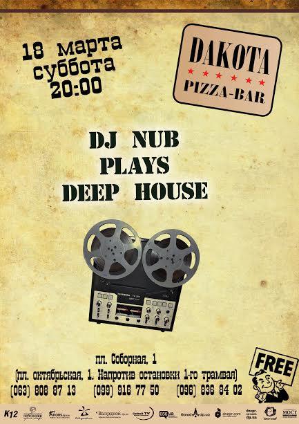 Nub он же N-junior – диджей, лайв артист, саунд продюсер. Основатель школы электронной музыки Plum Music а так же сообщества Dnepr Deep Community. Резидент лейблов Vesna Recordings и Miracles Music. Его авторские работы получили широкую поддержку в Европе от многих именитых диджеев и музыкантов, среди которых Andy Moor, Robert Owens, Matt Darey и многие другие.
