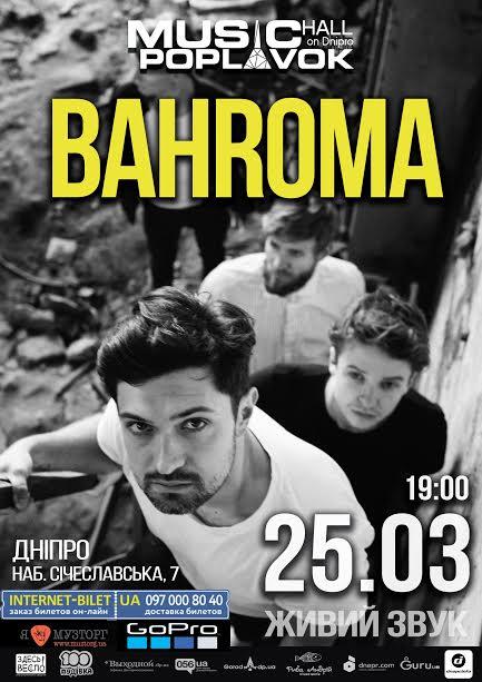 25 марта независимая украинская музыкальная группа BAHROMA с презентацией новой программы в Днепре, на сцене POPLAVOK Music Hall. Музыканты обещают удивить абсолютно новым и несвойственным им звучанием, представить новую программу и сыграть любимые хиты.