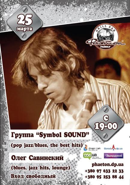 25 марта, в субботу, гриль-бар приглашает в Гости и гарантирует непередаваемые впечатления и эмоции. Фаэтон с радостью представляет Вам Гостей виртуозов best хитов, популярных стилей the blues, pop jazz – музыки и всемирных популярных вещей, харизматичных и неутолимых группу Symbol Sound! А так же разогреет и поддержит атмосферу комфорта приятные вокальные сюрпризы от нашего Гостя Олега Савинского! Атмосфера уюта и комфорта уже ждет Вас в самом необычном гриль-баре в городе! Ух, суббота, мы ждем тебя!