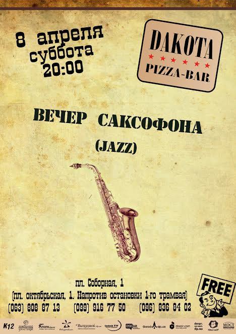 Пицца бар Дакота приглашает насладится соло саксофона под аккомпанемент пианино. В программе джазовые стандарты.
