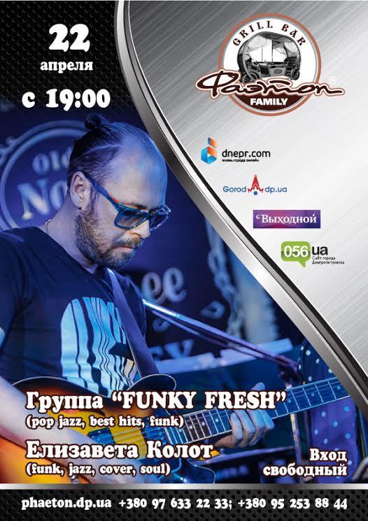 Гриль-бар Фаэтон подготовил яркую и насыщенную музыкальную программу. На сцене гриль-бара Елизавета Колот, а также Creative Band Funky Fresh со своей неутомимой музыкальной программой в стилях pop, funk & the best hits.