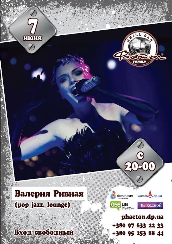 В среду, 7 июня, приглашаем Вас расслабиться и насладиться ярким выступлением Гостьи сцены Фаэтона. Традиционно, Вас ждет множество вкусных блюд, отличное настроение и музыкальные сюрпризы от элегантной Валерии Ривной. Приходите и наслаждайтесь!