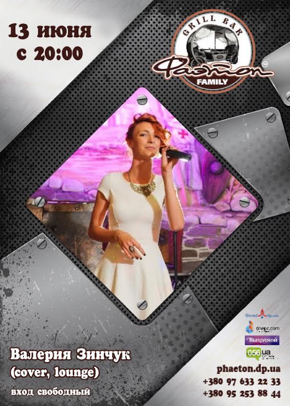 Во вторник, 13 июня, Фаэтон приглашает и ждет у себя в Гостях на летнюю расслабляющую атмосферу, дабы провести вечер с яркими эмоциями, отличным настроением и вкусными блюдами. На сцене гриль-бара представитель прекрасной и романтичной стороны, обворожительная Гостья с прекрасным и харизматичным вокалом Валерия Зинчук. Приходите, ждем в Гости!
