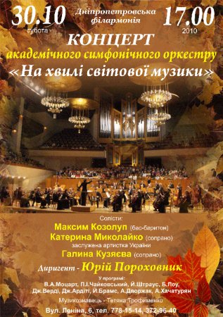 30 жовтня, Концерт Дніпропетровського академічного симфонічного оркестру ‘На хвилі світової музики’, Філармонія