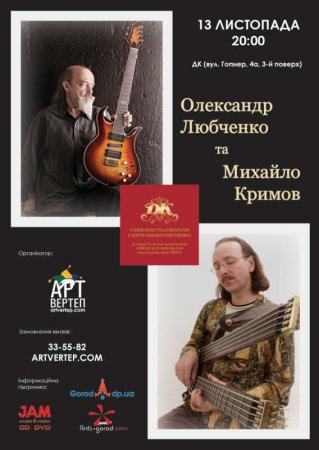 Олександр Любченко (м. Дніпропетровськ) – всесвітньо відомий майстр гітари, композитор, засновник своєї унікальної гітарної школи. Михайло Кримов (м. Київ) – один з найкращих європейських бас-гітаристів, та електро-контрабасистів. Засновник діючого сімейного дуету ‘Krymov Duo‘ (спільно зі своєю дружиною Людмилою – скрипалькою та вокалісткою).
