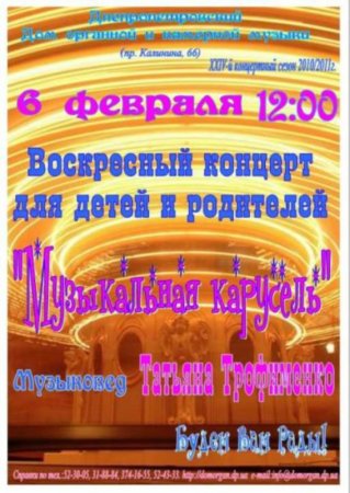 6 февраля, концерт Музыкальная карусель, Дом органной и камерной музыки