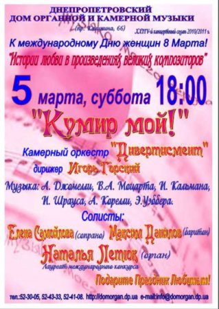 5 марта, Кумир мой! Дом органной и камерной музыки