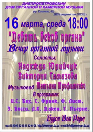 16 марта, Девять веков органа, Дом органной и камерной музыки