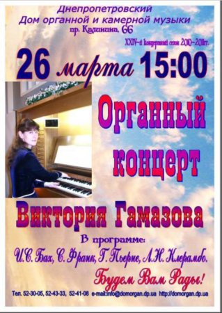 26 марта, Органный концерт, Дом органной и камерной музыки