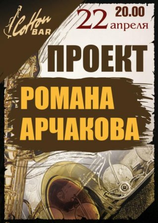 Музика 22 апреля, Проект Романа Арчакова, Коттон Бар (Cotton Bar) By Татьяна Иванова - 18.04.2011 00:00 0 24 Поділитися FacebookViberTelegramTwitterWhatsAppPinterestPrintEmail 22 апреля, Проект Романа Арчакова, Коттон Бар (Cotton Bar) Проект Романа Арчакова в стиле Coolswing, традиционный джаз, а так же авторские произведения. Коттон Бар (Cotton Bar) Адрес: ул. Шолом-Алейхема, 5, Центр (ЦУМ) Тел.: 744-85-76 Начало: 20:00