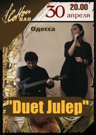 ‘Julep’ – дуэт исполнителей приятной, расслабляющей, качественной музыки, которая наполнит любой вечер романтикой, любое мероприятие – приятной атмосферой и доставит посетителям наслаждение от живых звуков гитары и вокала.
