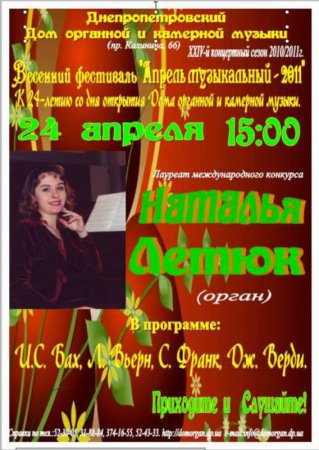 24 апреля, Наталья Летюк, Дом органной и камерной музыки