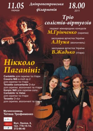 11 травня, Тріо солістів-віртуозів (Київ), Філармонія