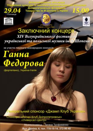 За участю лауреата міжнародних конкурсів Ганни Федорової (фортепіано), Україна – Італія