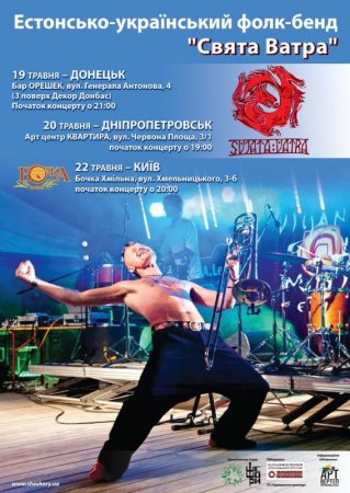 20 травня о 20.00 в арт-центрі Квартира Мистецька агенція Арт-Вертеп представля&curren, концерт естонсько-українського фолк-бенду ‘Свята Ватра’.