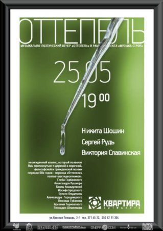 ОТТЕПЕЛЬ 25 мая в 19.00 в арт-центре ‘Квартира’ музыкально-поэтический вечер ОТТЕПЕЛЬ