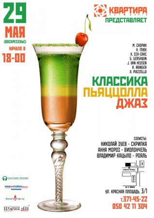 29 мая в 18.00 в арт-центре Квартира состоится концерт Классика + джаз = Пьяццолла.