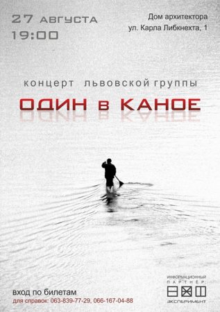 Вперше у Дніпропетровську у Будинку Архітектора відбудеться музичний концерт молодого, але дуже перспективного львівського гурту ‘Один в каное’