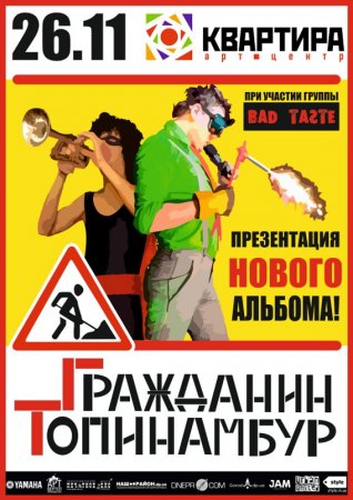 26 ноября в 19.00 в арт-центре ‘Квартира’ группа ‘Гражданин Топинамбур’ выступит с новым альбомом ‘Давай останемся друзьями’ (при поддержке группы Bad Taste).