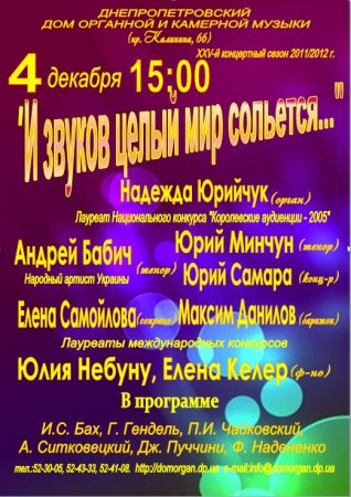 4 декабря, И звуков целый мир сольется…