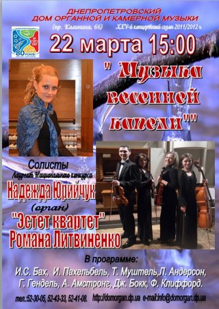 Музика 22 марта, Дом органной и камерной музыки By Татьяна Иванова - 01.03.2012 00:00 0 11 Поділитися FacebookViberTelegramTwitterWhatsAppPinterestPrintEmail 22 марта, Дом органной и камерной музыки