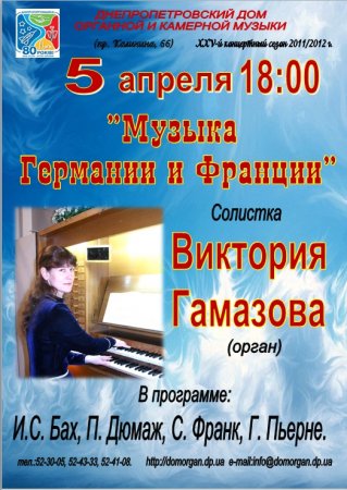 Музика 5 апреля, Дом органной и камерной музыки By Татьяна Иванова - 01.03.2012 00:00 0 17 Поділитися FacebookViberTelegramTwitterWhatsAppPinterestPrintEmail 5 апреля, Дом органной и камерной музыки