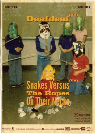 26 апреля в 20.00, в арт-центре ‘Квартира’ выступают группы deafdeaf из Самары и Snakes versus the ropes on their necks – из Киева. Стили – Heavy Pop, Dance Rock, Post Hardcore.
