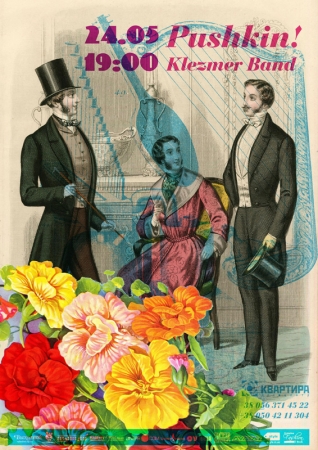 24 мая в 19.00 арт-центр ‘Квартира’ приглашает вас на один из самых веселых концертов мая – встречайте Pushkin! Klezmer Band! Вас ждет связь времен и народов, суши и моря, неба и земли, веселья и грусти. И всё это веселье – в честь Дня Рождения одного из самых известных мест Днепропетровска, арт-центра ‘Квартира’! Посмотреть и послушать: https://www.youtube.com/watch?feature=player_embedded&v=1gGbA2BmcYc Несмотря на молодость Пушкин Клезмер Бэнд уже сыграл десятки концертов на лучших площадках Украины, России, Европы и Уругвая. В их выступлениях принимали участие такие звезды, как Фрэнк Лондон, Dj Socalled, Ваня Жук, Псой Короленко и заслуженный артист Украины Сергей Орхимчук. Секрет популярности Пушкина в том, что из еврейского, цыганского и одесского фольклора он сделал настоящий украинский world music. ‘Квартира’ обещает вам: даже если вы не умеете танцевать, ваши ноги, руки и тело начнут двигаться сами по себе. Ваше настроение станет стремительно улучшаться, и вы обязательно будете слушать музыку Push kin! Klezmer Band в любое удобное время дня и ночи после этого концерта. _______________________________________ ‘За жгучую смесь из цыганского и одесско-еврейского фолка их часто называют украинским аналогом Бреговичу […] музыкантам удалось создать удивительную атмосферу: энергетике Pushkin Klezmer Band многие коллективы могли бы позавидовать.’ Евгений Стасиневич на lb.ua о выступлении на Джаз-Коктебеле. https://vk.com/kiev.klezmer https://www.myspace.com/kiev-klezmer https://www.facebook.com/kiev.klezmer _____________________________________ где: арт-центр Квартира, Днепропетровск, ул.Красная пл 3 кв.1 когда: 24 мая в 19.00 сколько? 50 грн – предпродажа 60 грн – в день концерта по всем вопросам обращайтесь: 056 371 45 22 050 42 11 304 * кол-во танцевальных мест не ограничено!