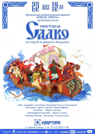 23 мая в 19.00 арт-центр ‘Квартира’ и музыкально-педагогический проект ЮНАЯ ОПЕРА представляют музыкальный спектакль ‘САДКО’ (по опере Н.А.Римского-Корсакова). После спектакля, в планах участников проекта – посетить Новгород, куда на День Города они официально приглашены, чтобы исполнить ‘САДКО’.