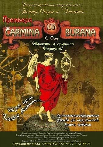В основу этого грандиозного сочинения легли стихи и песни странствующих поэтов ХІІІ в., написанные на латинском и старонемецком языках. Содержание их разнообразно: весенние хороводы и любовная лирика соседствуют с темой греховных радостей жизни. Многоцветная радуга чувств, настроений, желаний и страстей человеческих заключена в грозную раму заклинаний, обращенных к Фортуне. Она повелительница того поразительного мироустройства, в котором с ошеломляющей быстротой чередуются удачи и потери, счастье и горе, жизнь и смерть, надежда и отчаянье. Лишь на считанные минуты это гипнотизирующее завораживающее движение останавливается, чтобы возобновиться с новой устрашающей энергией и ускорением.