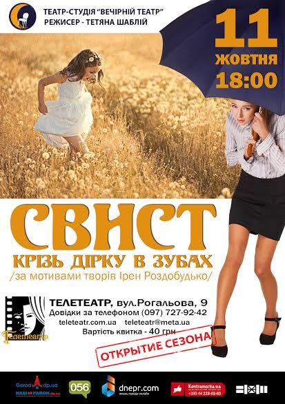 Запрошуємо на виставу за творами Ірен Роздобудько, що відбудеться 11 жовтня о 18:00 в Телетеатрі на Рогальова, 9.