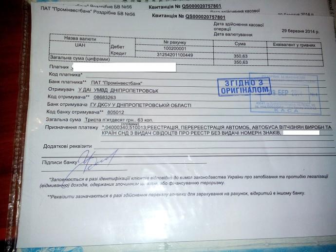 Т.е., в МРЭО нам навязали сумму, которая несколько выше той, которую мы должны оплатить согласно действующего законодательства, заставили оплатить ее в определенном банке. И хотели не дать квитанцию. Соответственно пытались лишить нас возможности доказать и оспорить противоправные действия МРЭО.