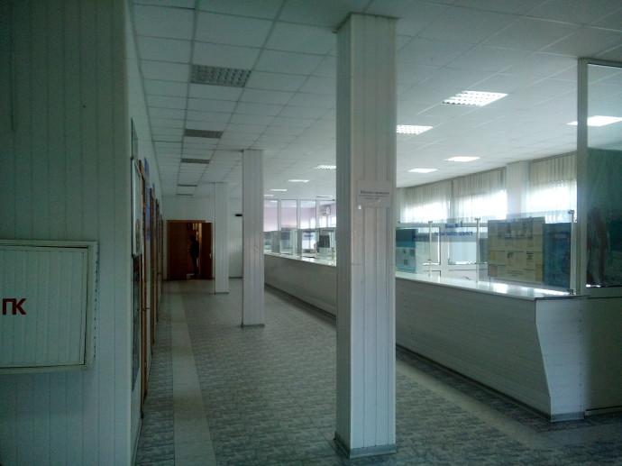 Смотрим на часы 15-50. Унылый зал с большим количеством окошек абсолютно пуст