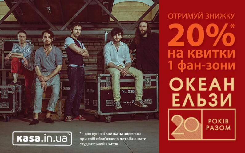 Обещанные студентам в Днепропетровске билеты со скидками завтра поступят в кассы. Данное сообщение появилось сегодня на официальной страницы группы Океан Эльзы в Фейсбуке. ‘Сеть билетных касс предоставляет всем студентам возможность приобрести билеты на концерты Океан Ельзы за скидкой!