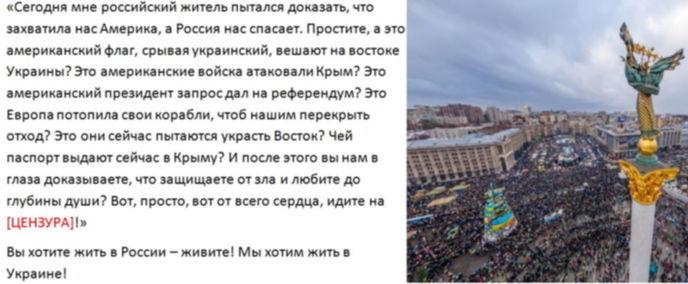 Вы сами бы выдержали такой идеологический и психологический пресс? Поэтому не надо оскорблять россиян терминами ‘ватник’ (как и в ответ на это называть украинцев ‘укропами’), постарайтесь наладить с ними диалог, отчетливо представляя среду, в которой они живут в современной России.