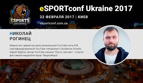 22 февраля на конференции eSPORTconf Ukraine 2017 выступит директор по маркетингу мультиканальной YouTube-сети AIR (Agency of Internet Rights) Николай Рогинец.