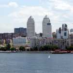 С 1980 г. заметную роль в архитектурном облике города играет здание Цирка, в котором впервые на просторах бывшего Советского Союза применено шатровое покрытие, традиционное для цирков шапито, из сборных железобетонных элементов. Вечером, когда цирк зажигает огни, шатер как в фокусе иллюзиониста, превращается в жерло вулкана с оплавленными краями, изрыгающего чеканных зверей, горящих в лучах красочной подсветки. Огнедышащий вулкан гремит вертушками декоративных флюгеров. Световые, цветовые и шумовые эффекты выполнены в стиле настоящего циркового представления. Нет необходимости в поясняющих надписях. Нет смысла на цирке писать: цирк. Удачно найденная архитектурная форма лучше всяких слов свидетельствует об этом. А место расположения цирка гармонично завершает формирование речного фасада.