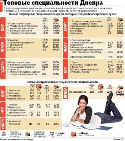 Вступительная кампания в очередной раз продемонстрировала, что молодежь с большей охотой идет на гуманитарные специальности, хотя спрос на рынке на них невелик. Например, в Горном нацуниверситете на 75 мест специальности Финансы и кредит претендуют 659 человек, при этом госзаказ на нее отсутствует напрочь.