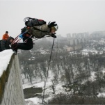 Запорожская команда экстремалов Team-Extreme Adventures устроила необычный аттракцион. Все желающие, за плату в 120 гривен, могли проверить свою храбрость прыжком с 45-метровой высоты.