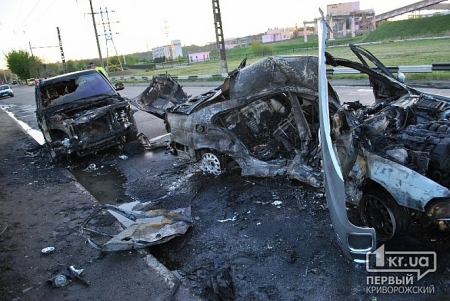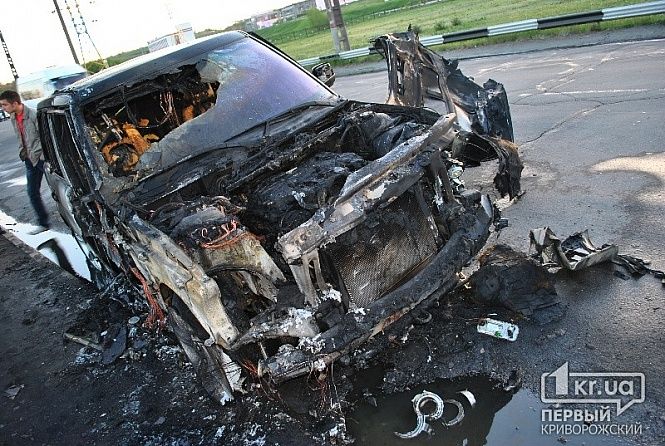 Вчера вечером в Терновском районе Кривого Рога в результате ДТП полностью сгорели автомобили «BMW» и «Range Rover»